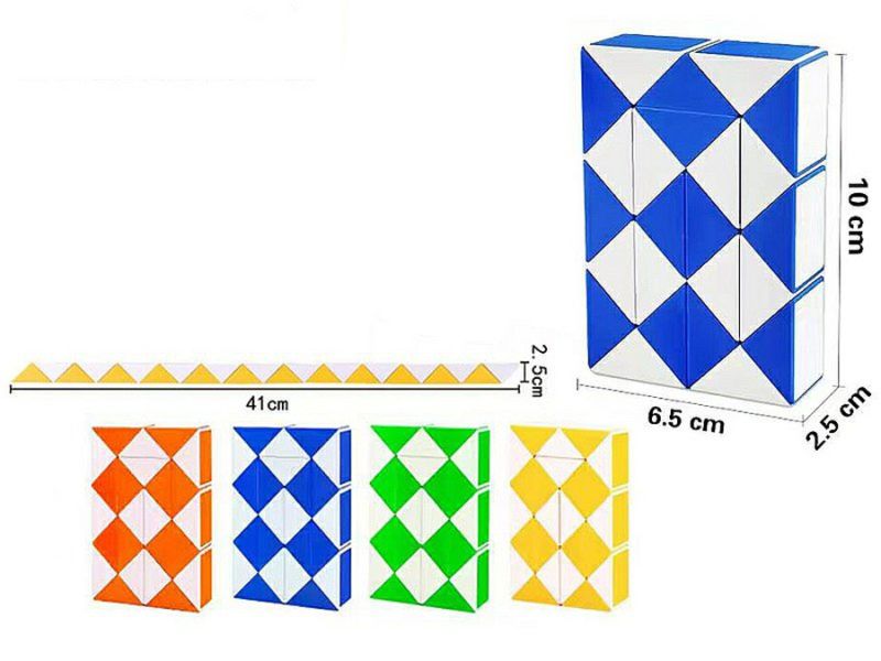 Układanka wąż magik to kostka składająca się z 24 segmentów w kształcie trójkątów które można łatwo obracać.