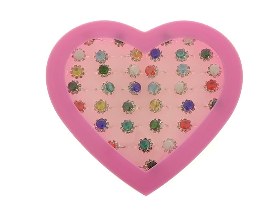 A144E12 - Pierścionki w serduszku (regulowane) 36 sztuk kwiatuszki z kulistym oczkiem