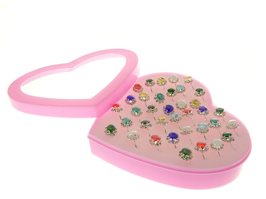 Pierścionki w serduszku (regulowane) 36 sztuk kwiatuszki z kulistym oczkiem