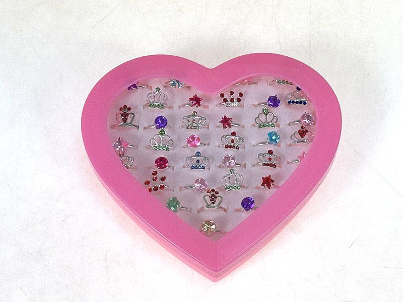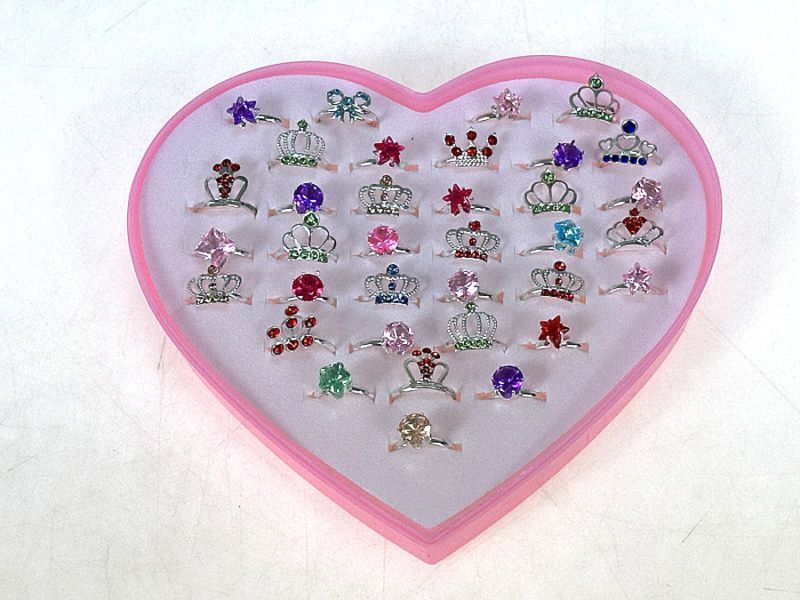 Pierścionki w serduszku (regulowane) 36 sztuk srebrna korona