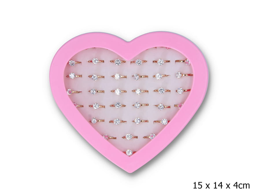 A144L01 - Pierścionki w serduszku (regulowane) 36 sztuk złote z diamentem