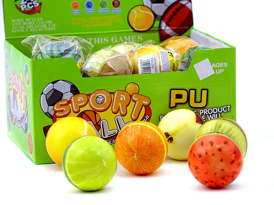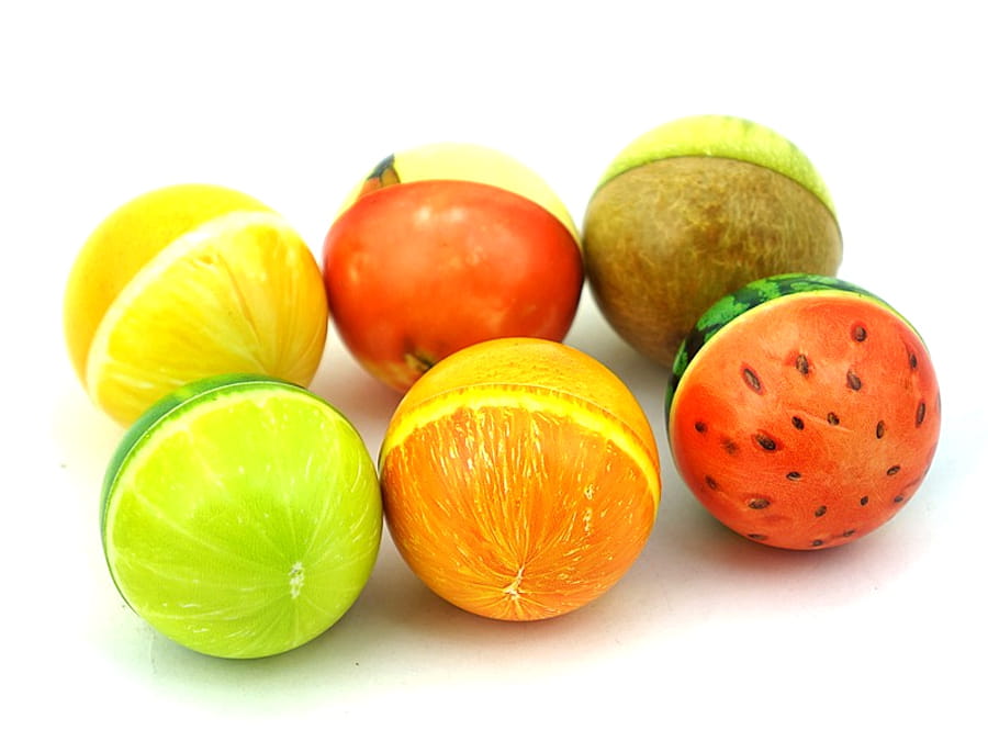 Miękkie, kolorowe piłeczki antystresowe - wersja owocowa.