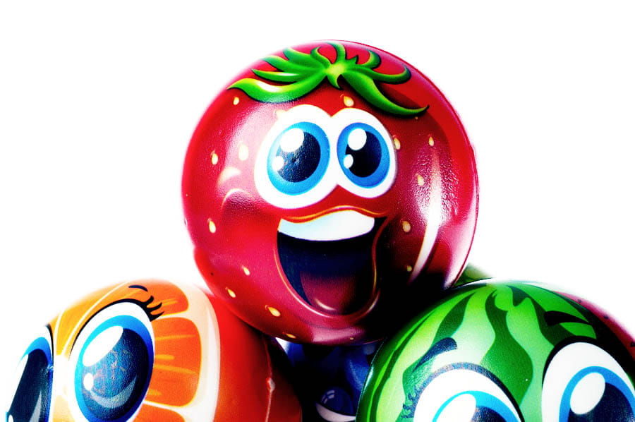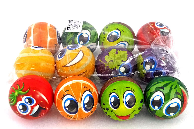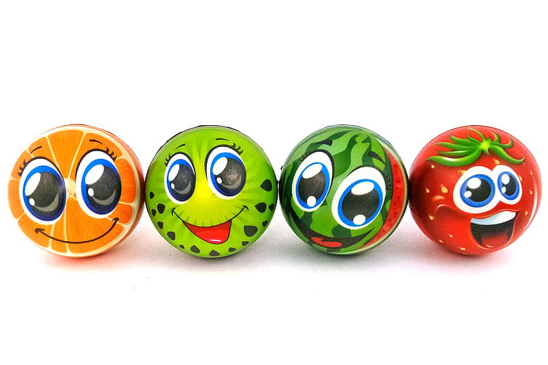 Miękkie, kolorowe piłeczki antystresowe - wersja owocowa.