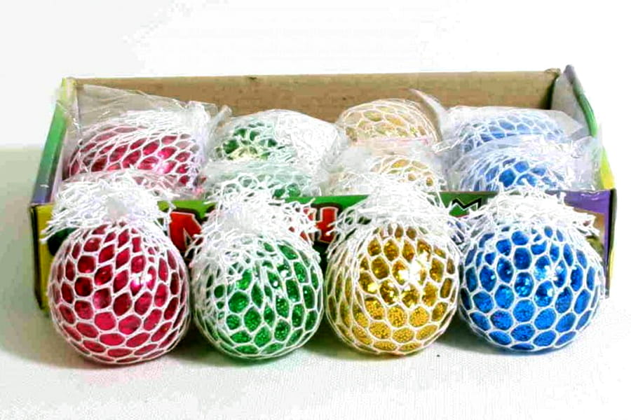 Piłeczka żelowa (gniotek) metalizowana w siatce, różne kolory