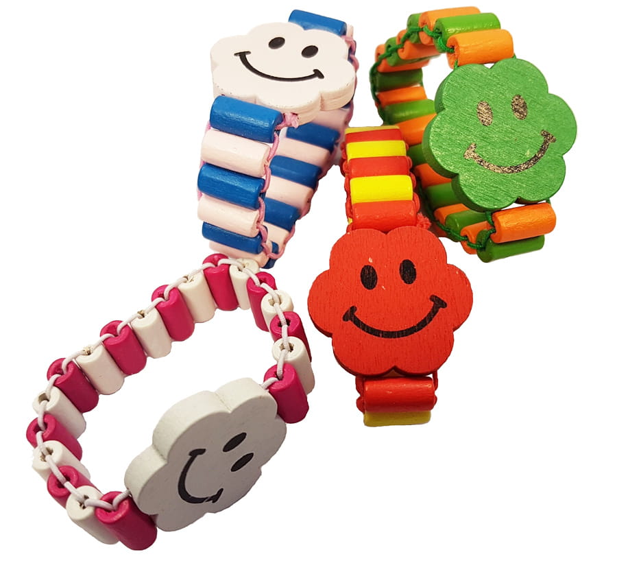 A350A05 - Bransoletka dziewczęca drewniana Uśmiechnięte kwiatuszki, różne kolory