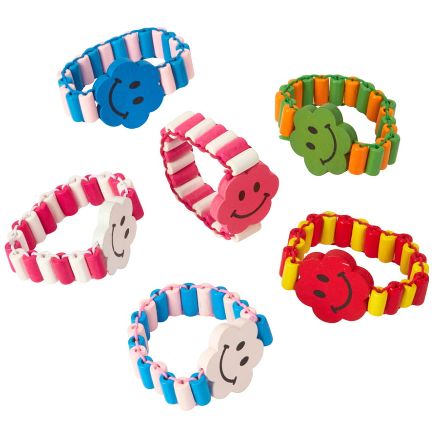 Bransoletka dziewczęca drewniana Uśmiechnięte kwiatuszki, różne kolory