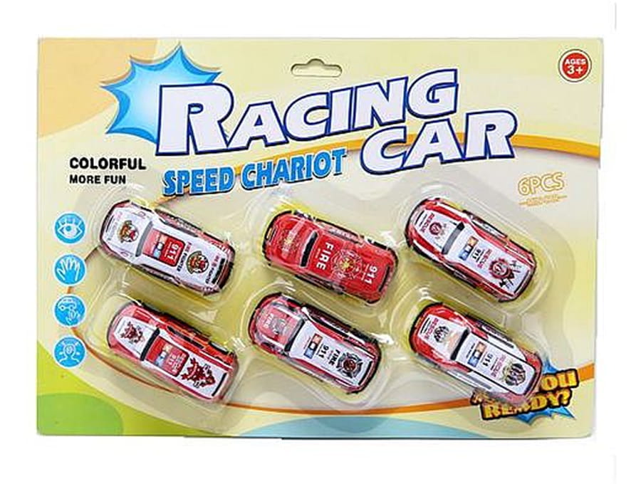Zestaw zawiera 6 samochodów strażackich w wersji free wheel czyli bez napędu.