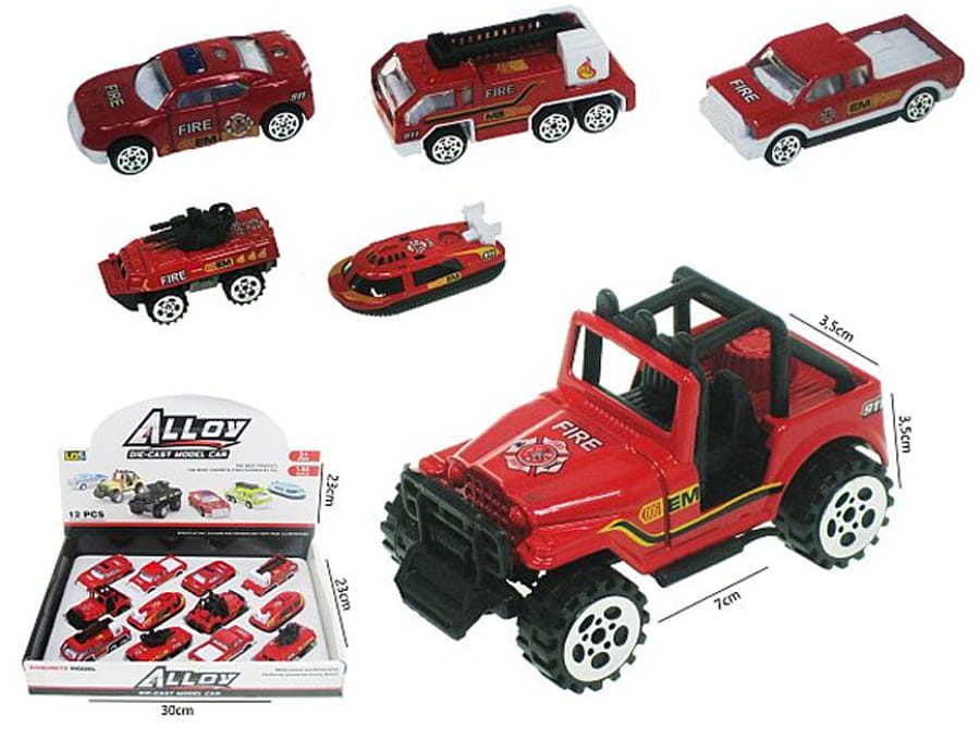 Samochody metalowe straż pożarna, 7 cm, różne wzory