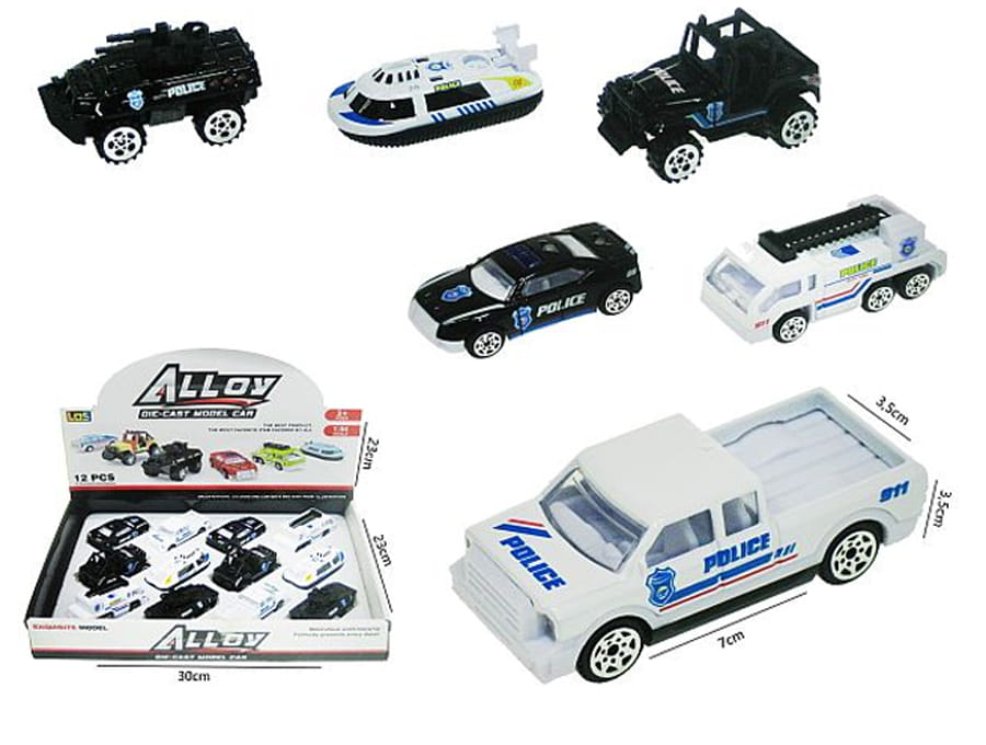 A715G15 - Samochody metalowe policja, 7 cm, różne wzory