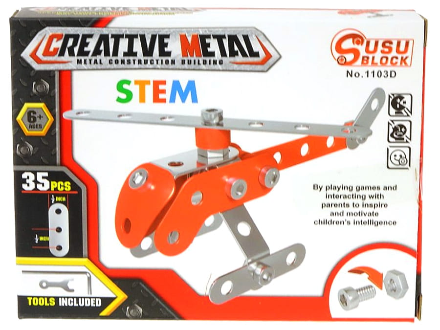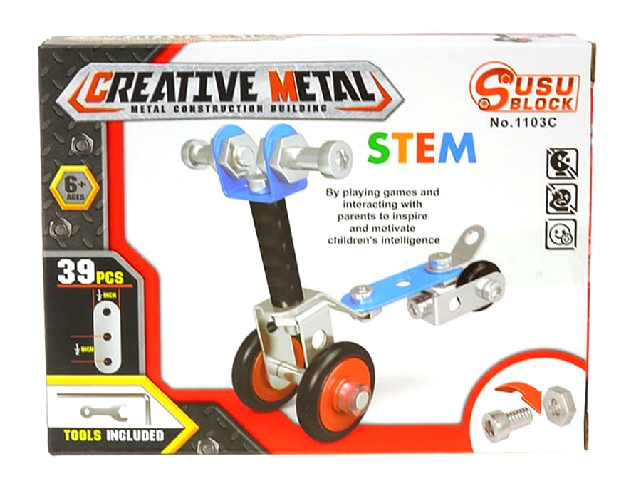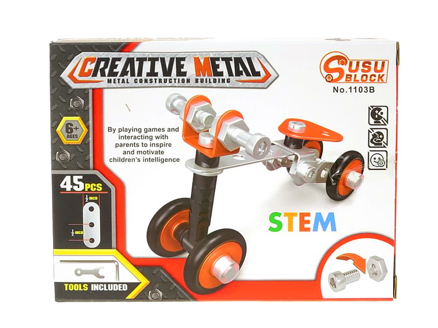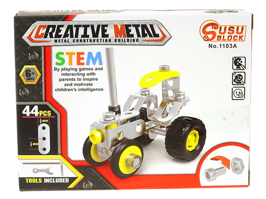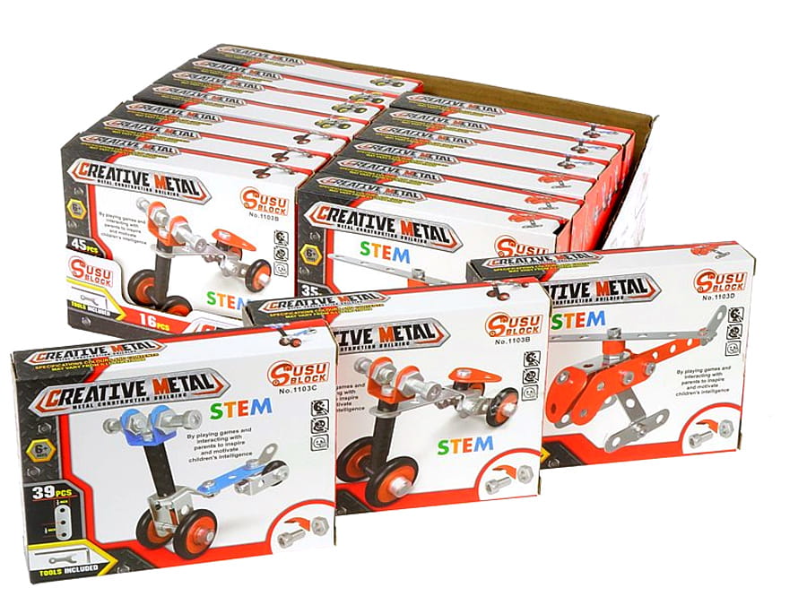 A900M03 - Klocki konstrukcyjne metalowe do skręcania pojazdy mix wzorów, 35-45 elementów NOWOŚĆ